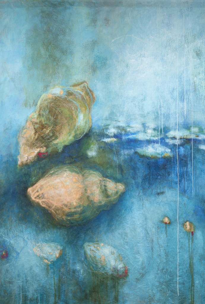 Dans la sรฉrie ยซ guerre ยป par exemple, la figuration sโest imposรฉe dans un premier temps et la toile a รฉtรฉ un terrain de combat oรน les figures humaines offraient leur deuil et leur souffrance, puis peu ร peu les couches se sont superposรฉes, ont traversรฉ une sonoritรฉ chaotique jusquโau ยซpresque-monochromeยป qui sโest dรฉposรฉ sur la toile tel une paix immobile et silencieuse…