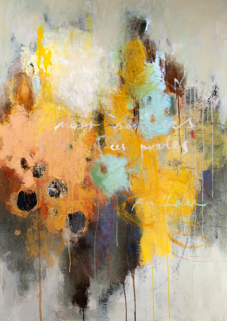 ยซ Jaime que les tableaux ยซ durent ยป longtemps, quโils soient dรฉpositaires dโune multitude de gestes, de figures, de formes. Cette sรฉdimentation par couches successives donne ร voir lโรฉmergence dโun autre espaceโฆ Souvent, une toile reste ร lโatelier pendant des semaines voire des mois, recueillant les gestes successifs, les visions, les traces de vie, les impulsions.